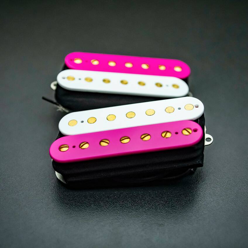 When ordering multiscale pickups from us, you simply need to spec out the pickups that you require, in their regular, straight format, using our pickup builder. So, for slanted open coil pickups, build a standard straight set of open humbuckers and for an active soapbar style, build a set with soapbar sized, no holes covers.