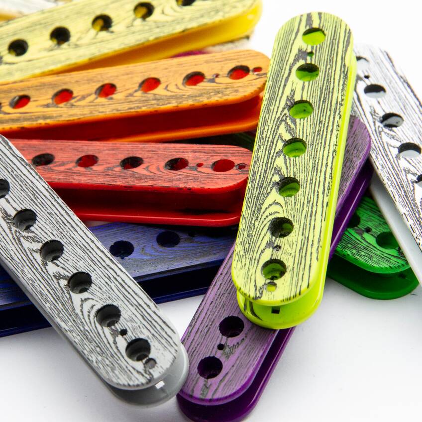 Released in tandem with the Unity humbuckers is another Bare Knuckle first: wood-effect etched open coil bobbins.