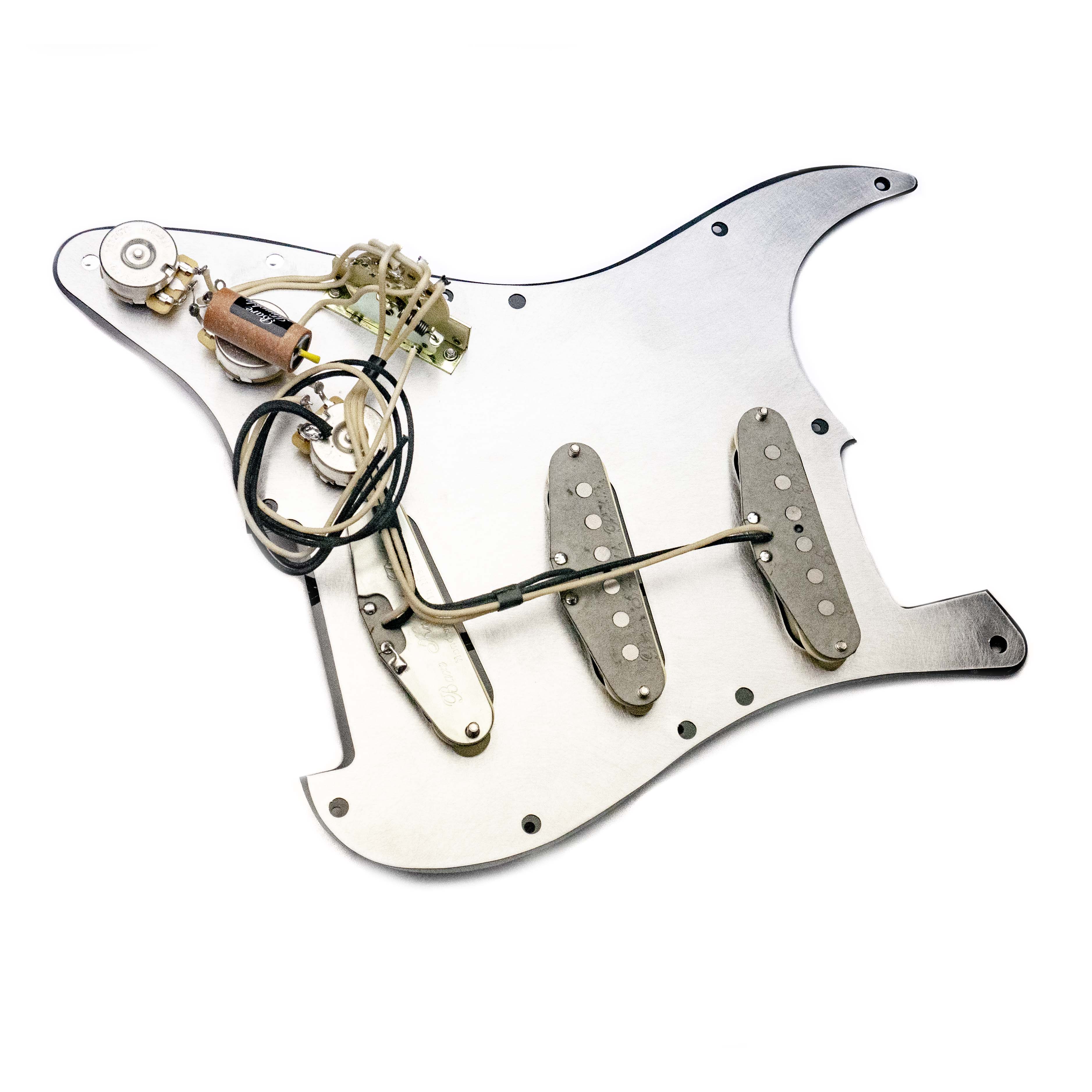 As with all of our pre-wired guards, this one and is handwired at our UK workshop, loaded with our custom spec BKP / CTS volume and tone pots and Duelund paper in oil tone capacitor.