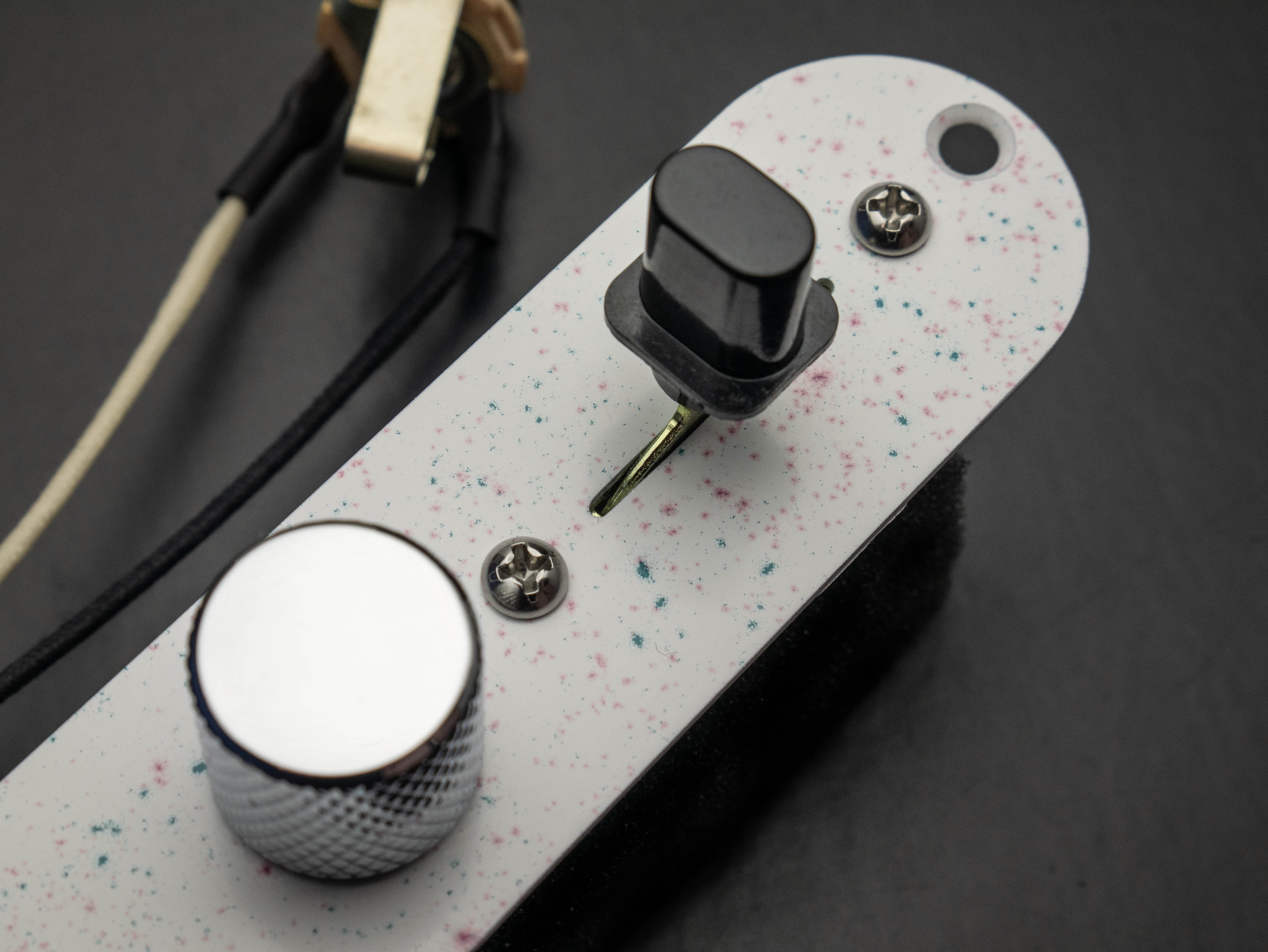 Fresh from the Bare Knuckle Custom Shop, we have a custom powder-coated Telecaster control plate in white speckle finish, built up with our most premium components and all handwired in our UK workshop.