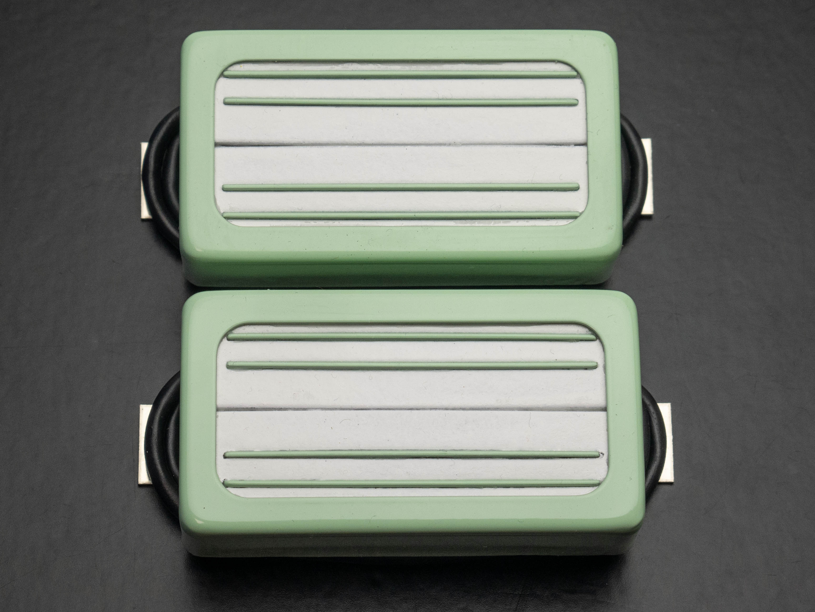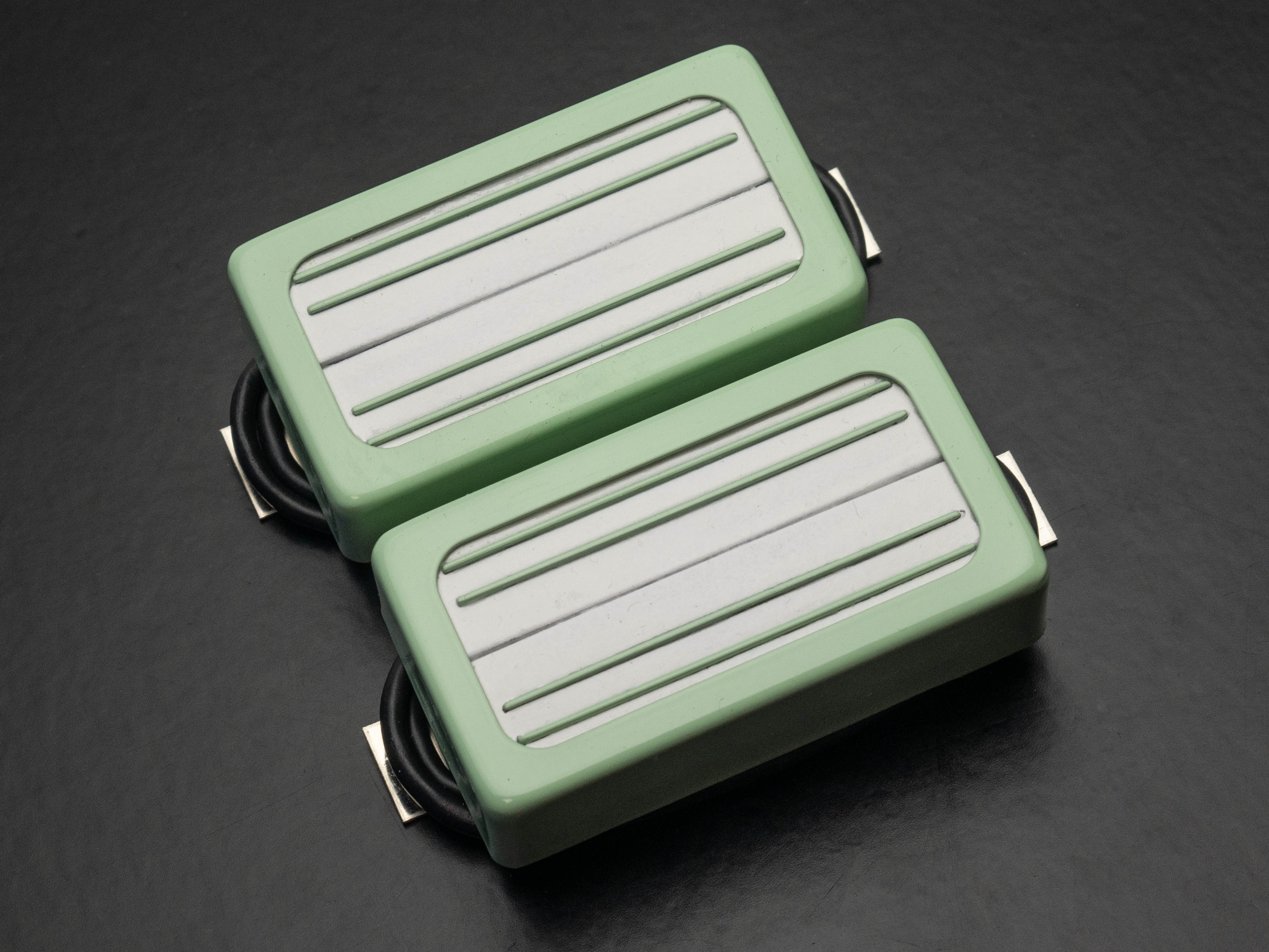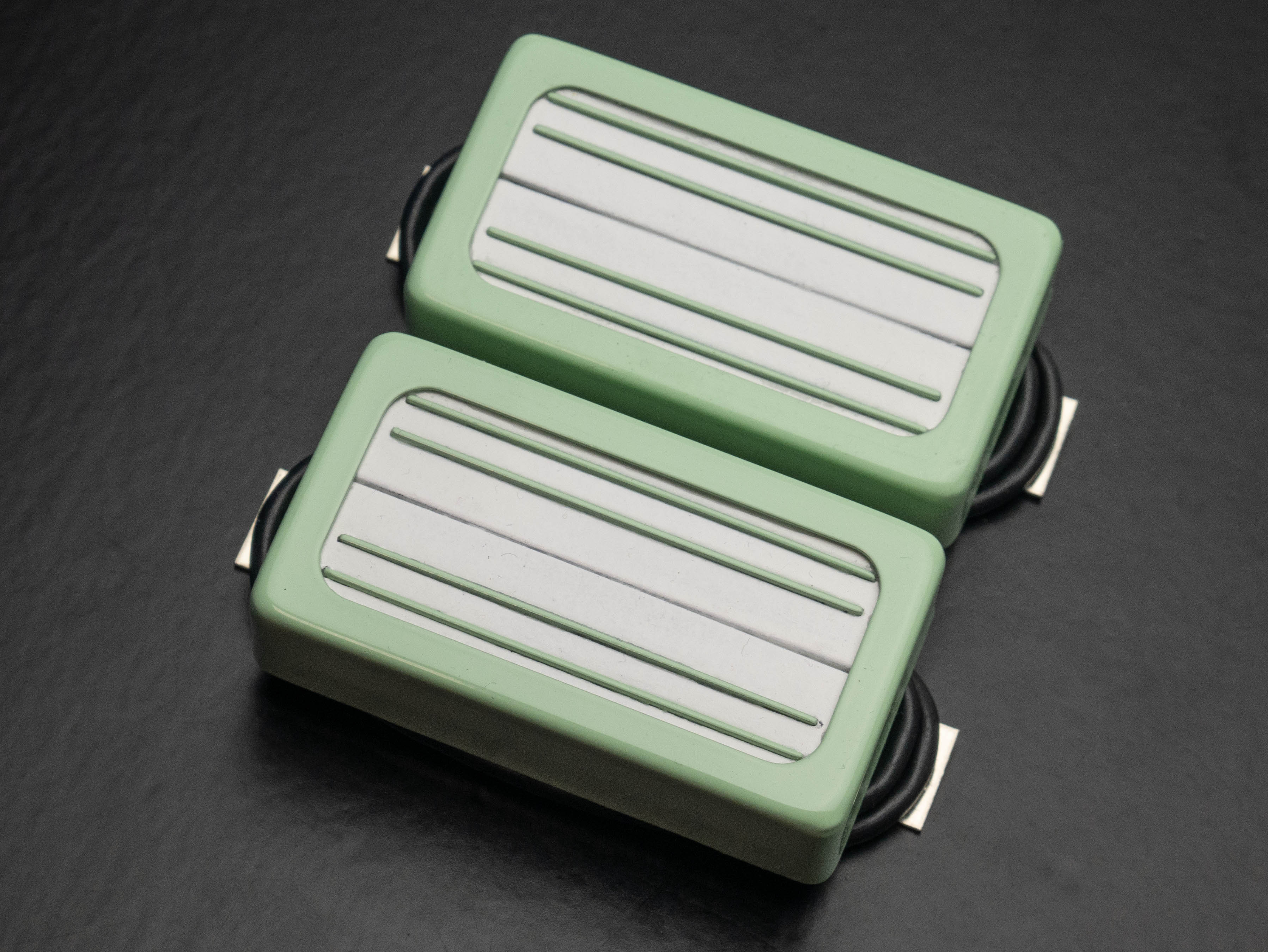 Special Edition Black Hawk humbucker set with green TV covers, green powder-coated blades and white bobbins