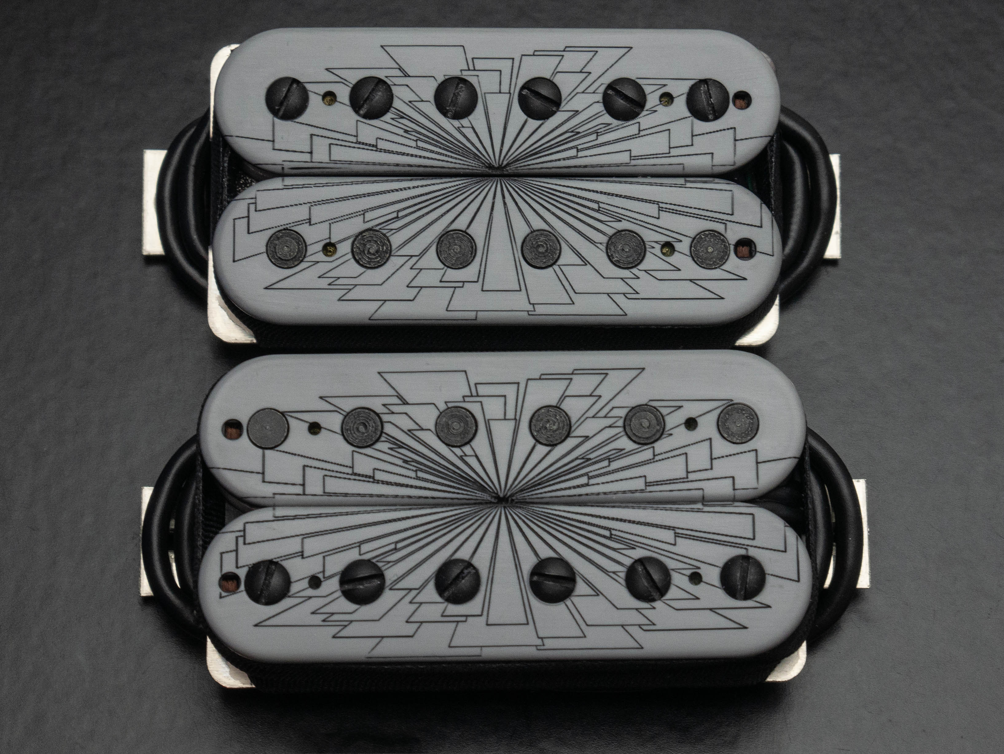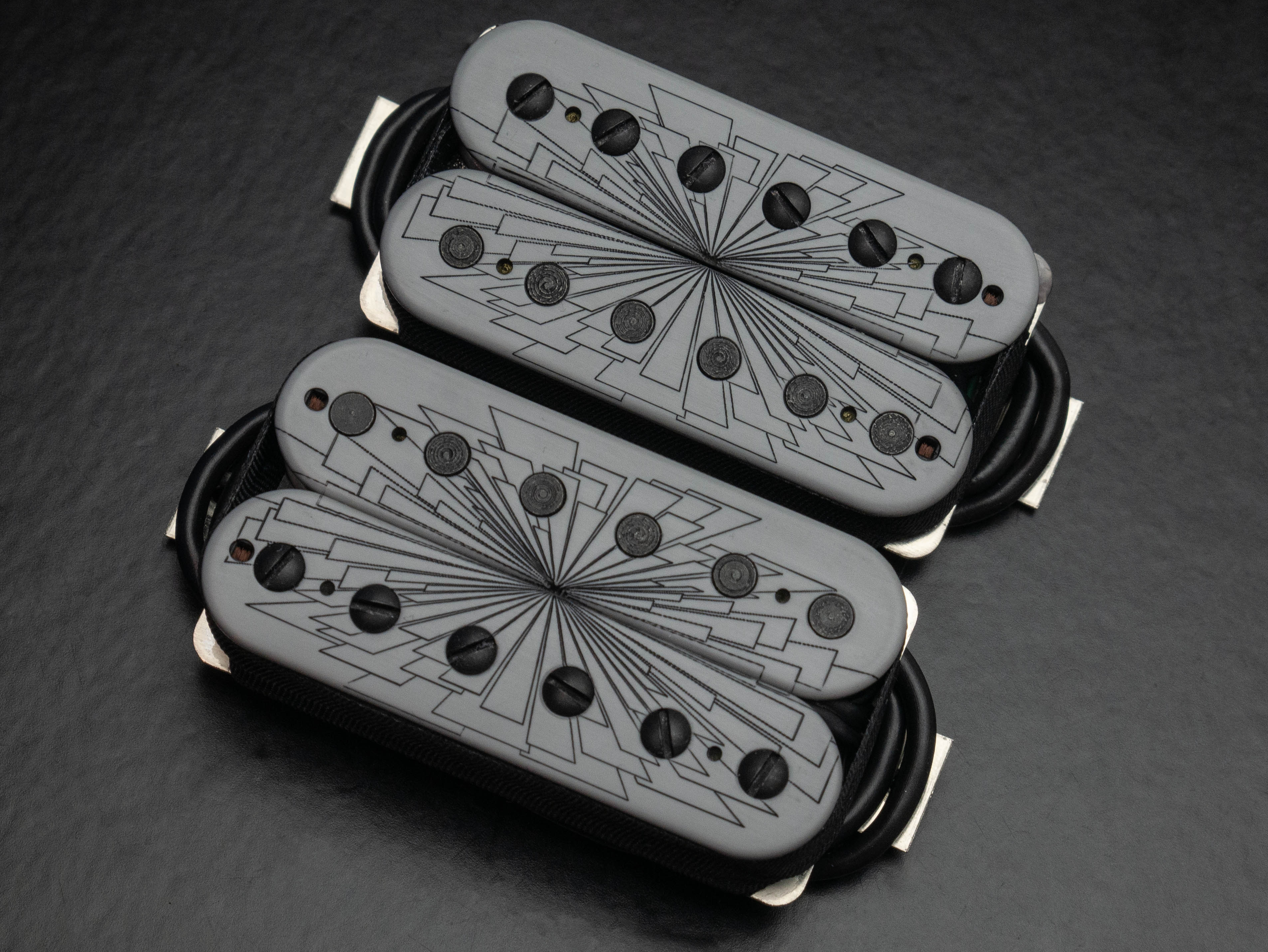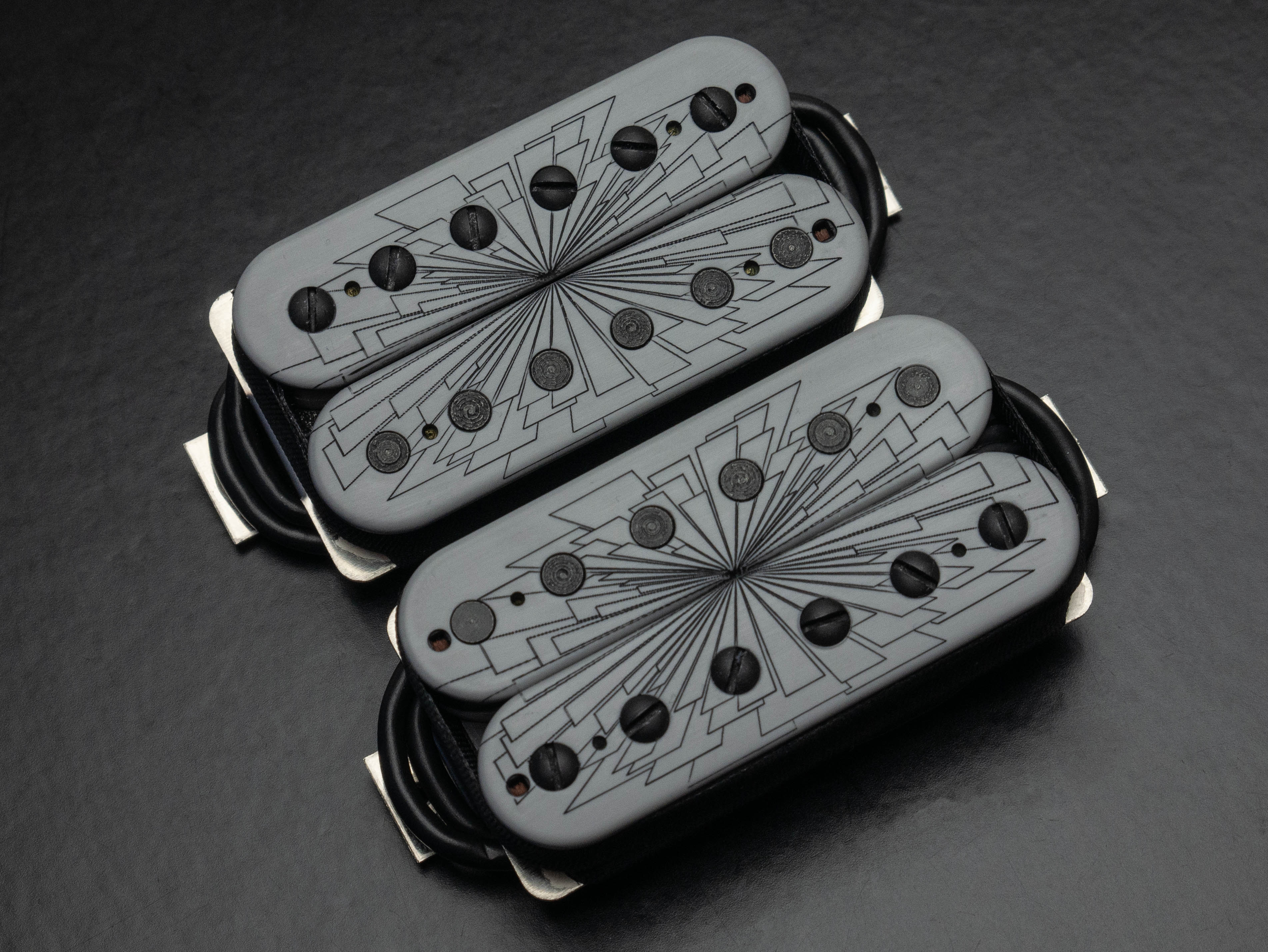 Nailbomb humbucker set, custom etched and painted with grey "Vanishing Point" finish