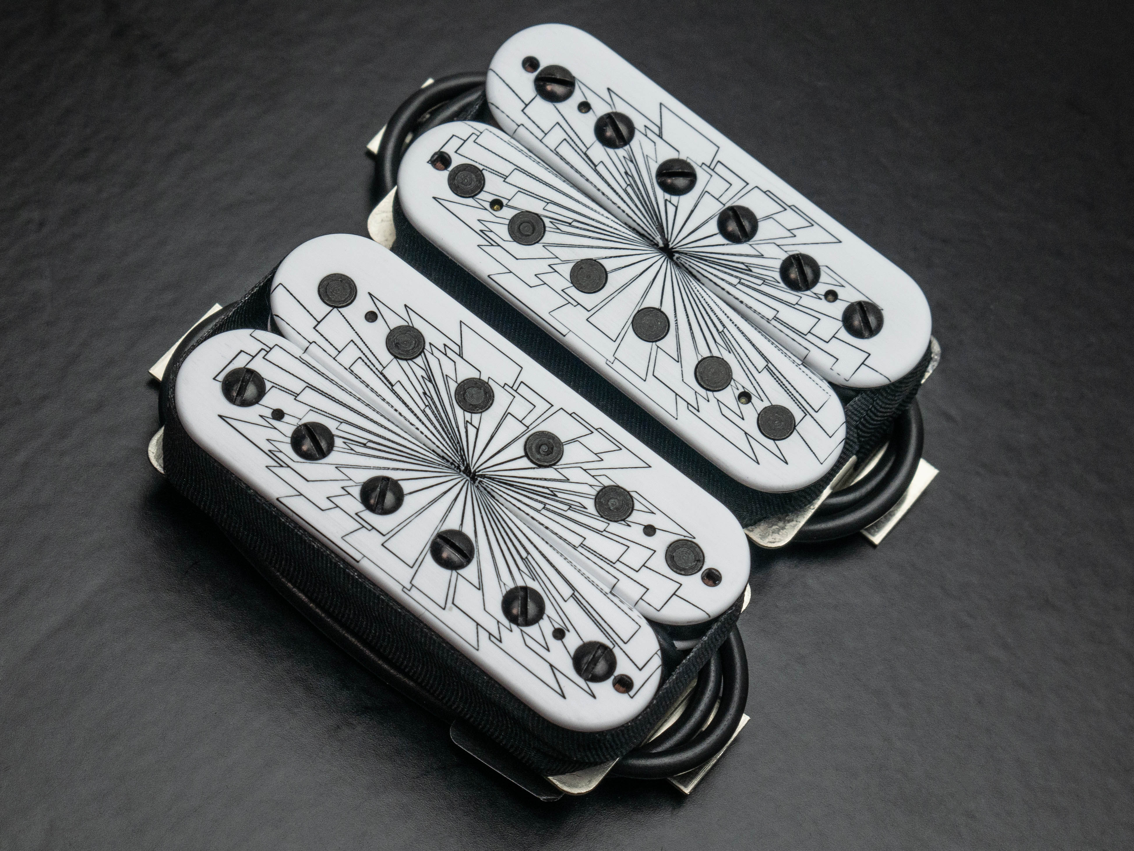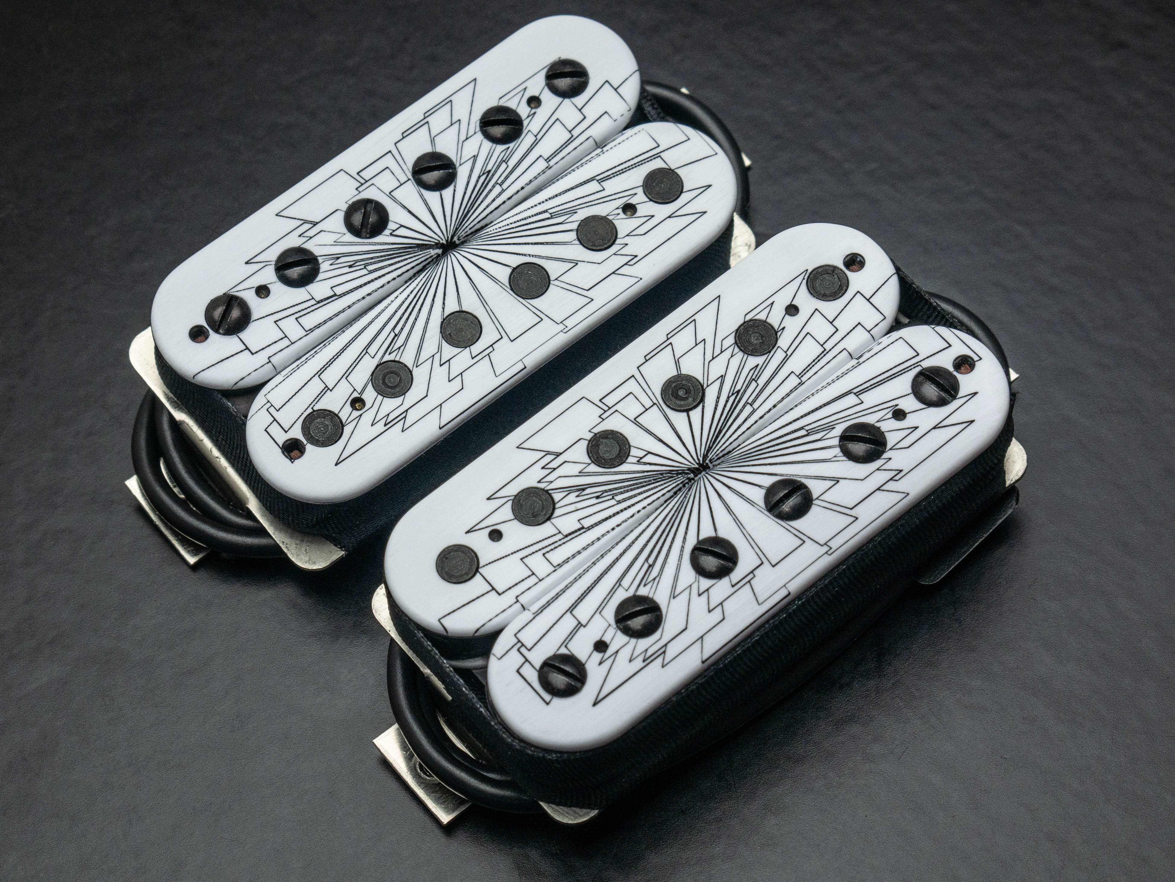 Nailbomb humbucker set, custom etched and painted with white "Vanishing Point" finish
