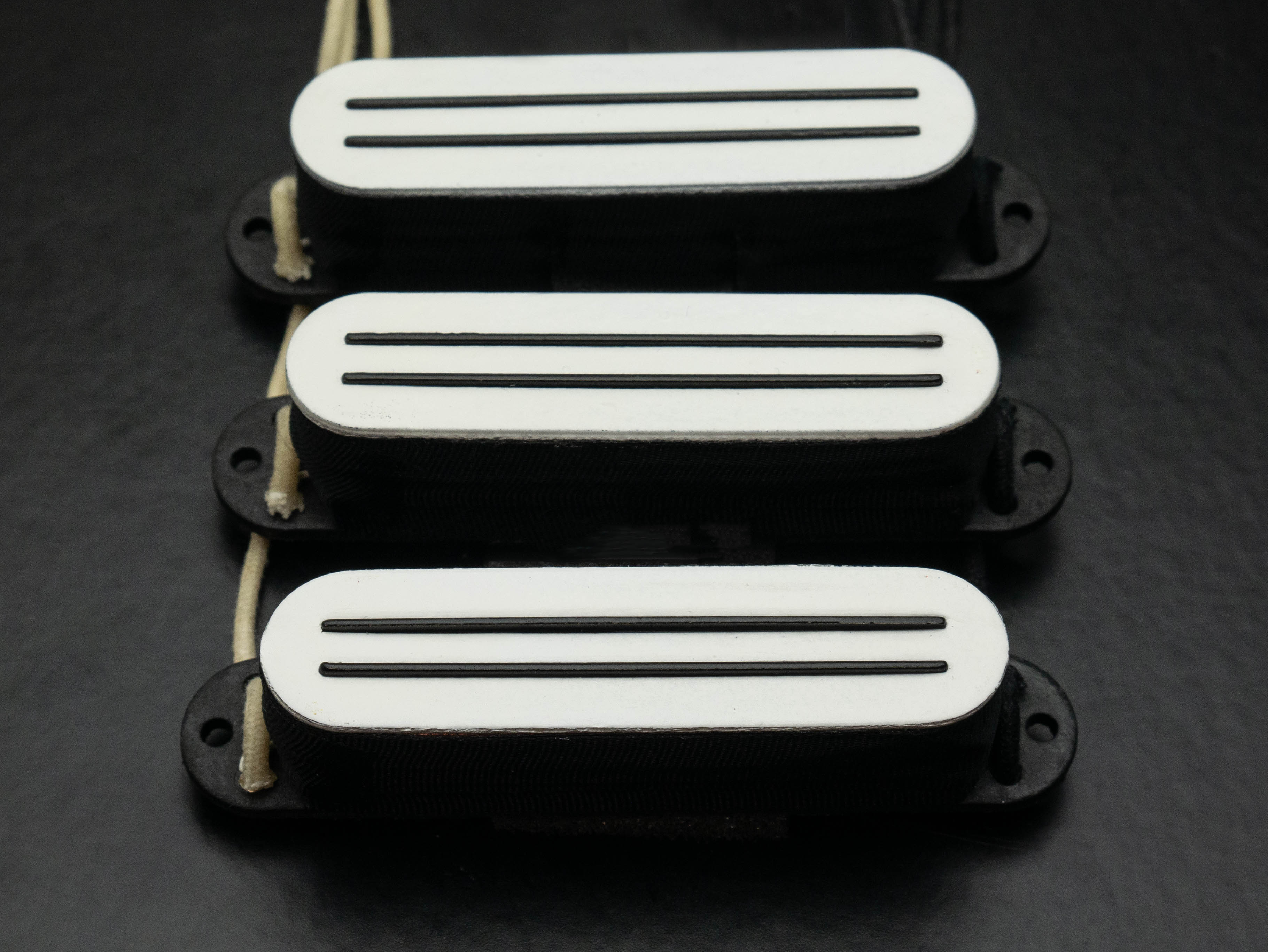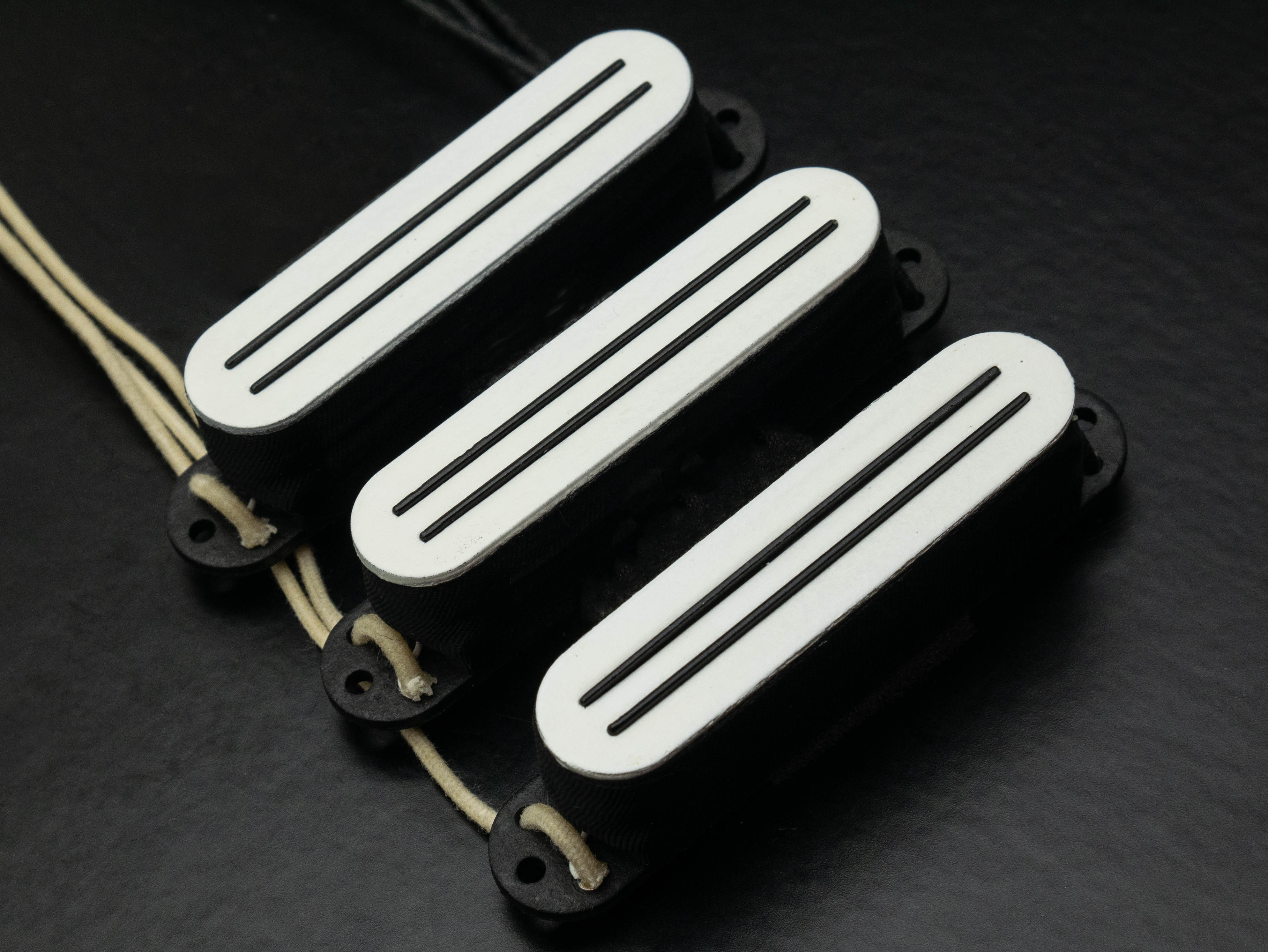 Cobra Strat singlecoil set in white with custom black blades