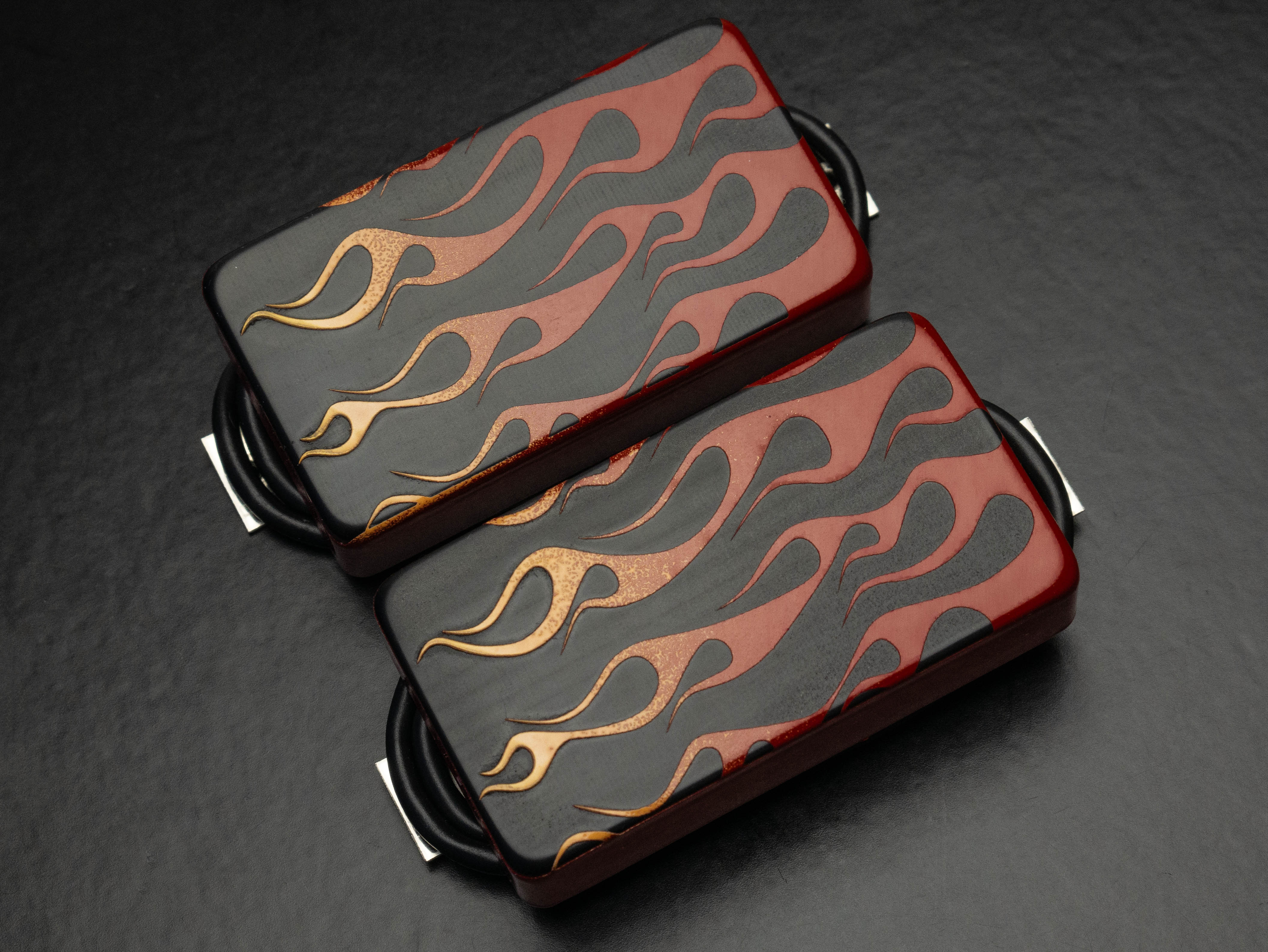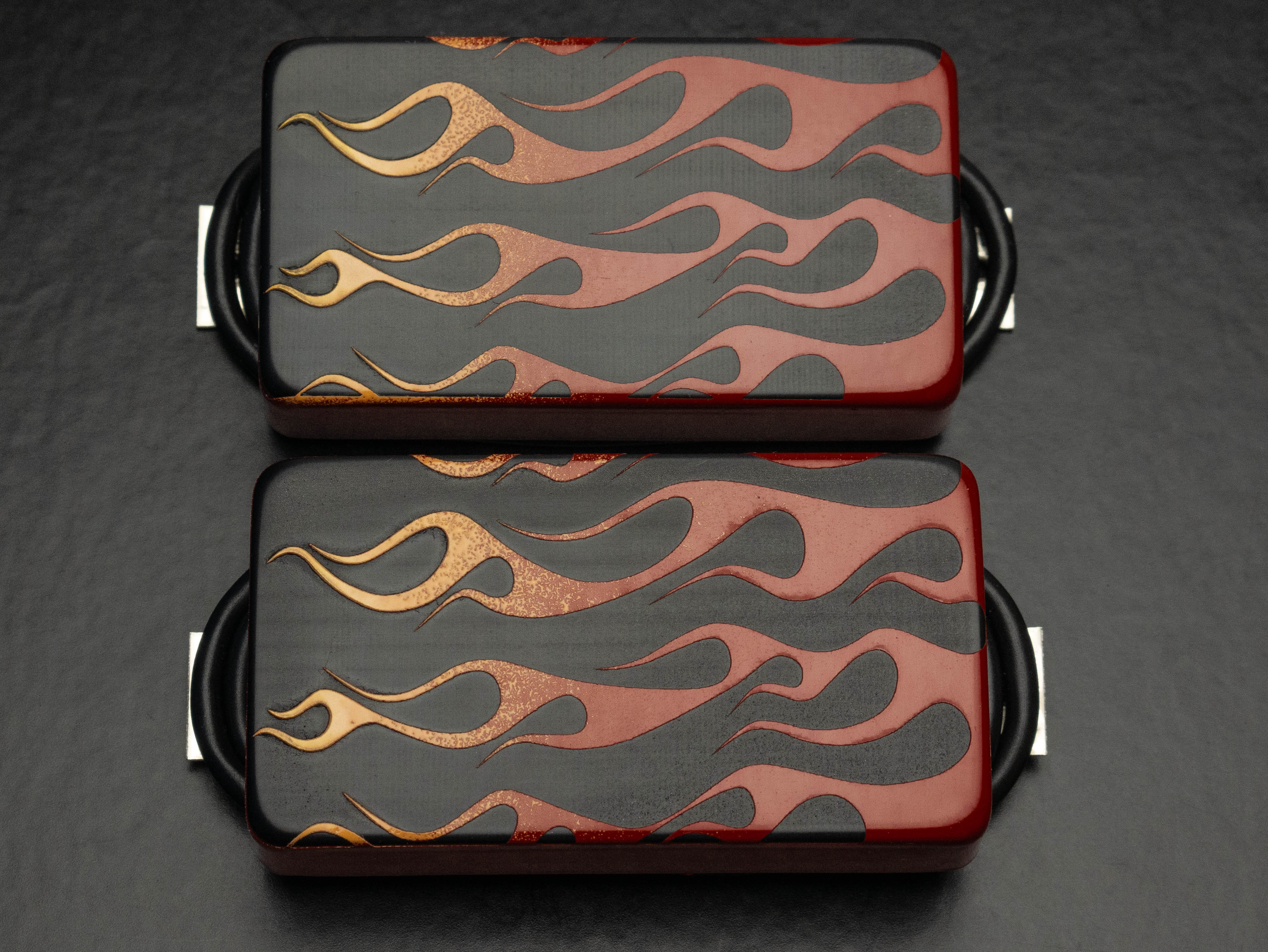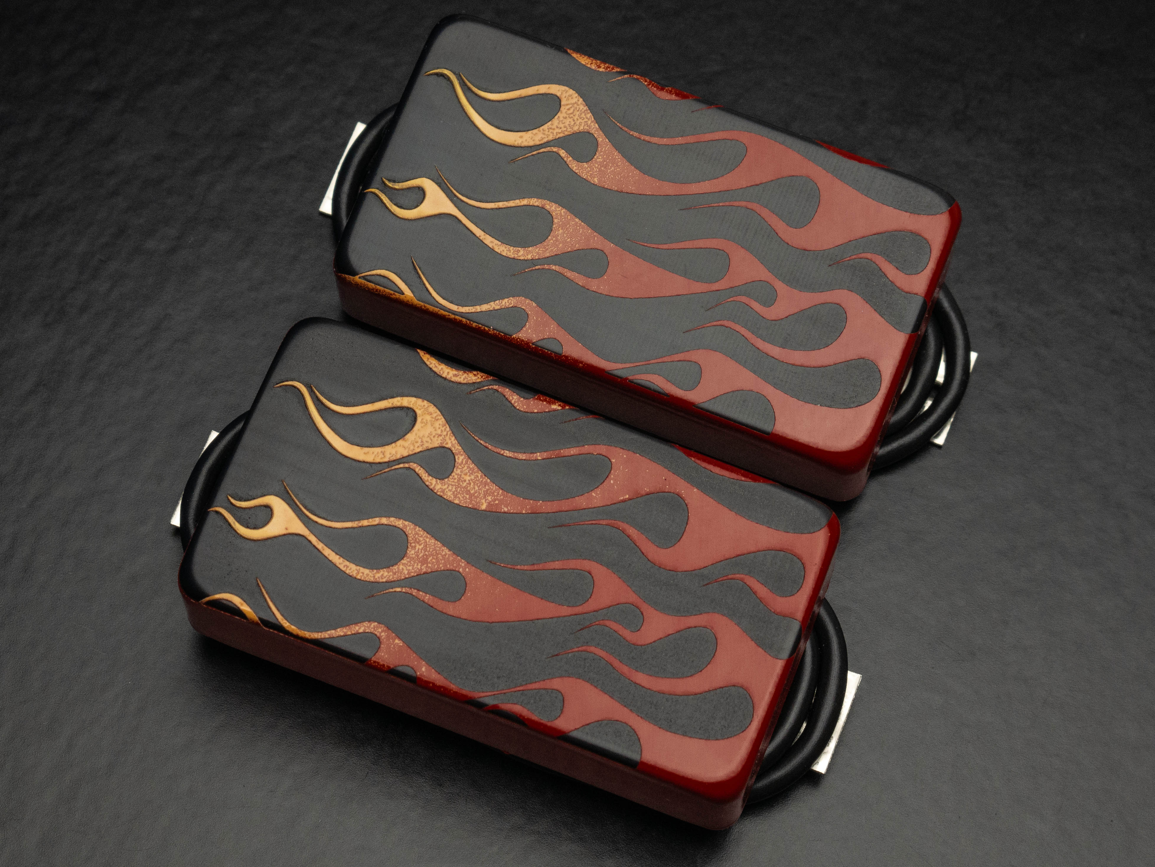 Holydiver humbucker calibrated bridge and neck set, with custom 2 tone flame etched and painted covers