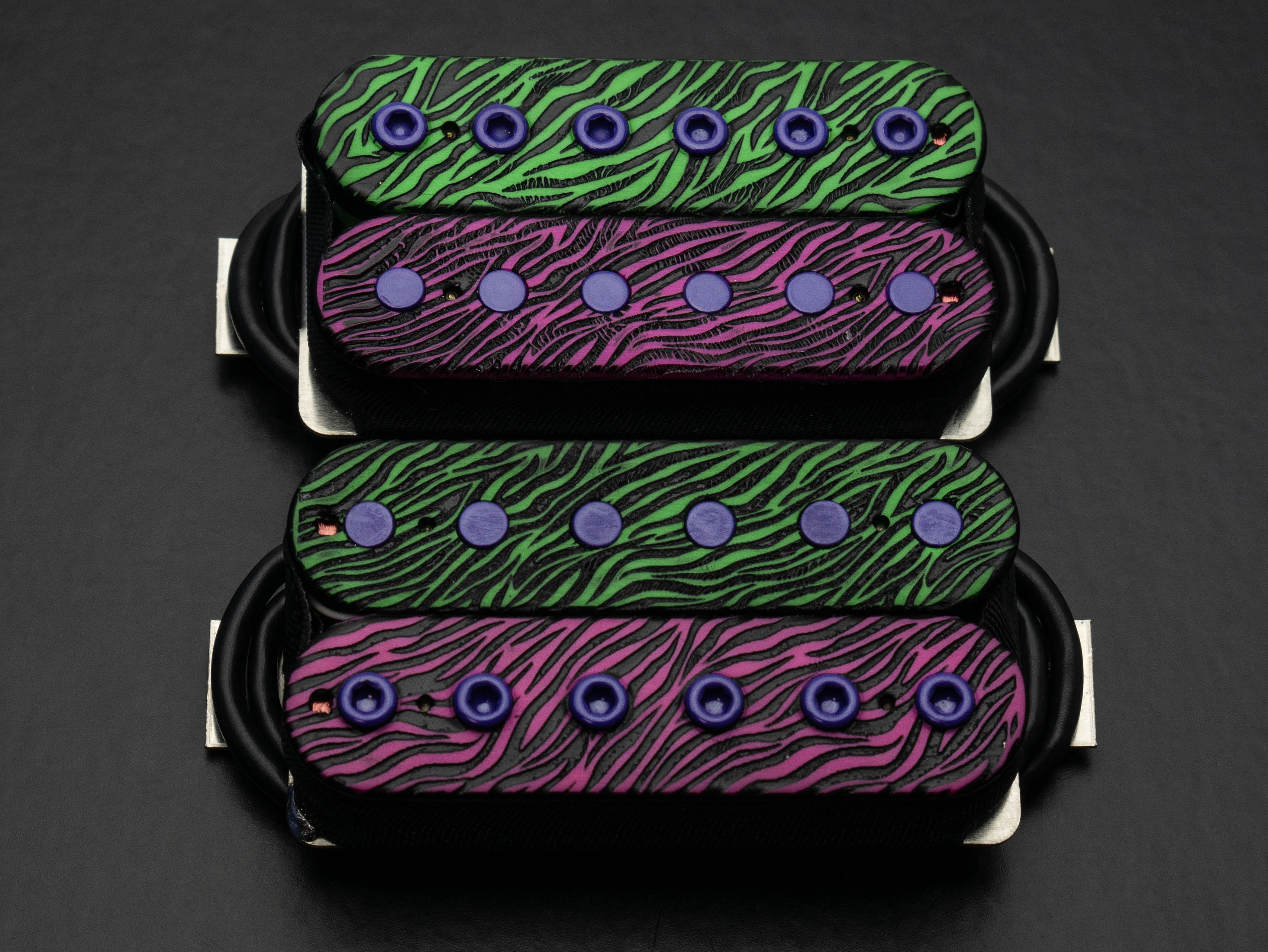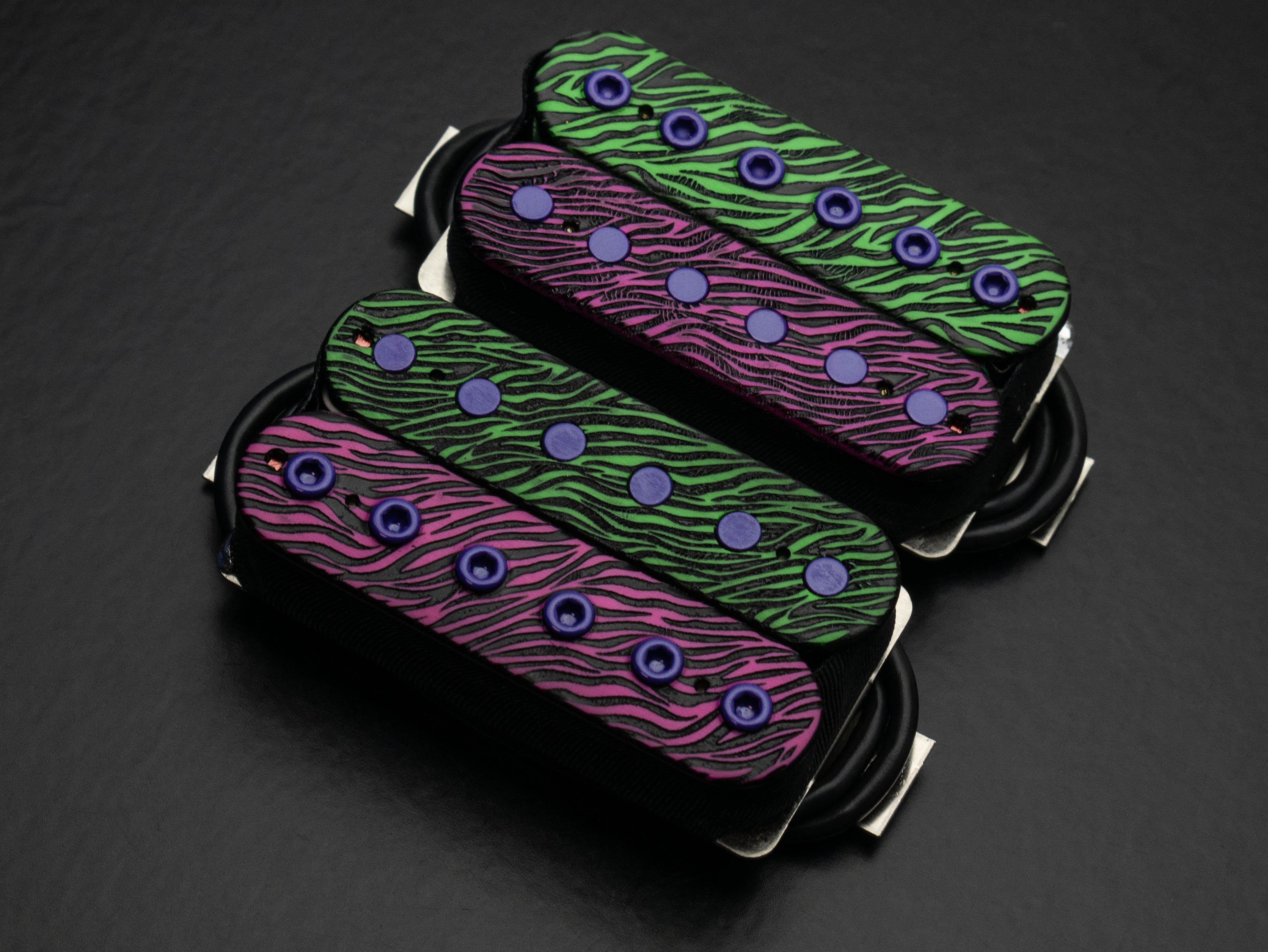 Custom green and pink zebra etched 53mm Holydiver humbucker set.
