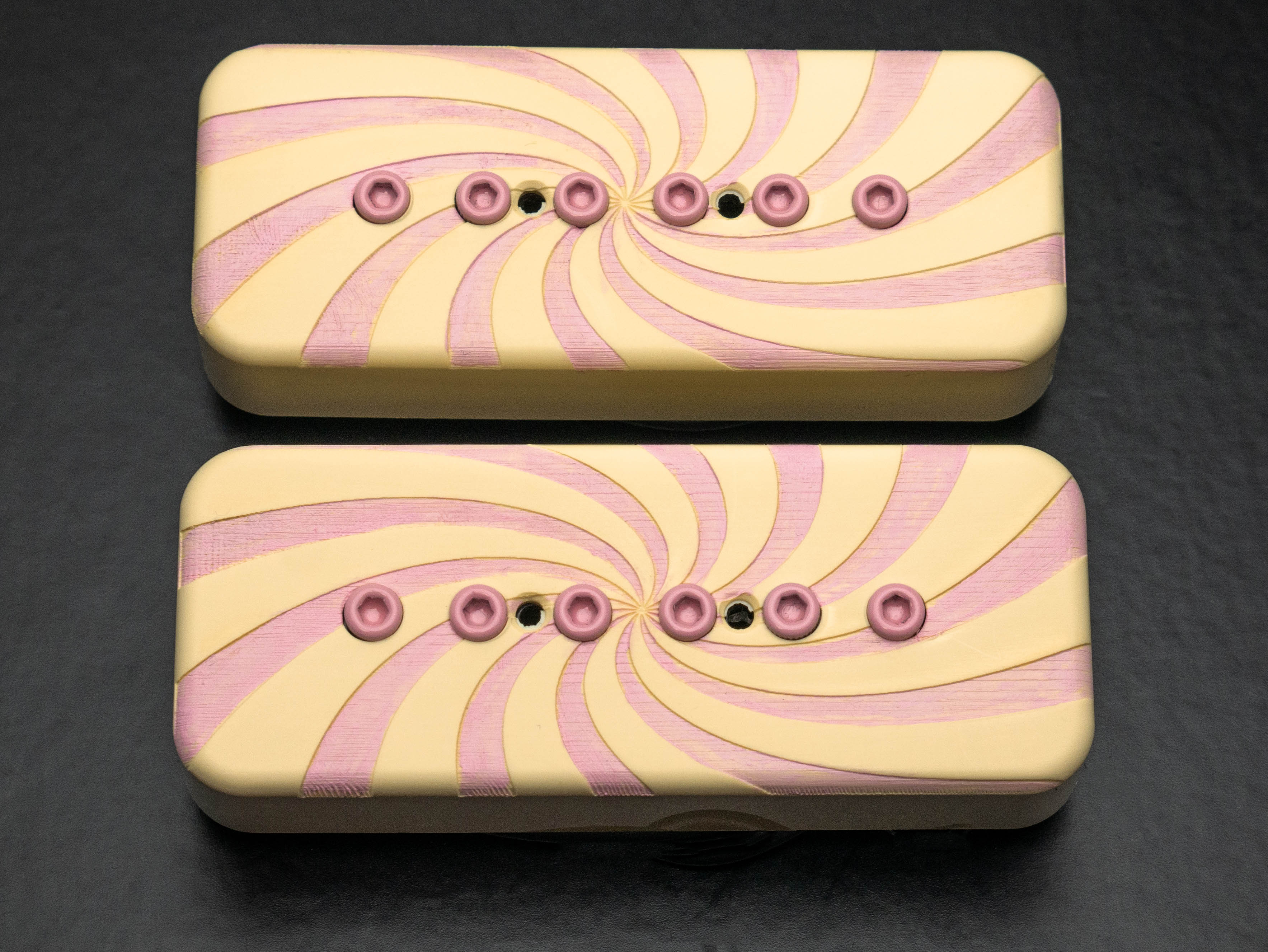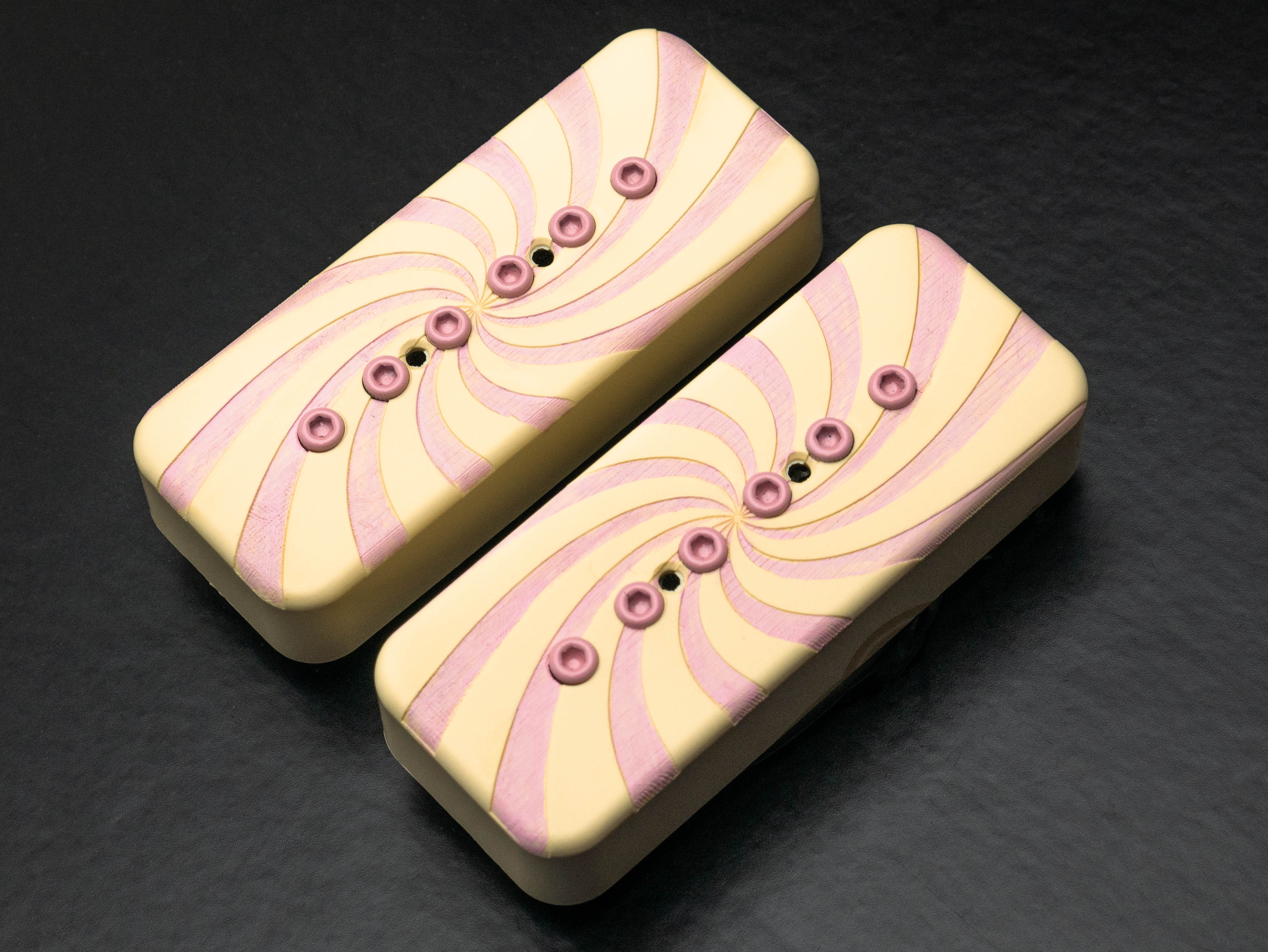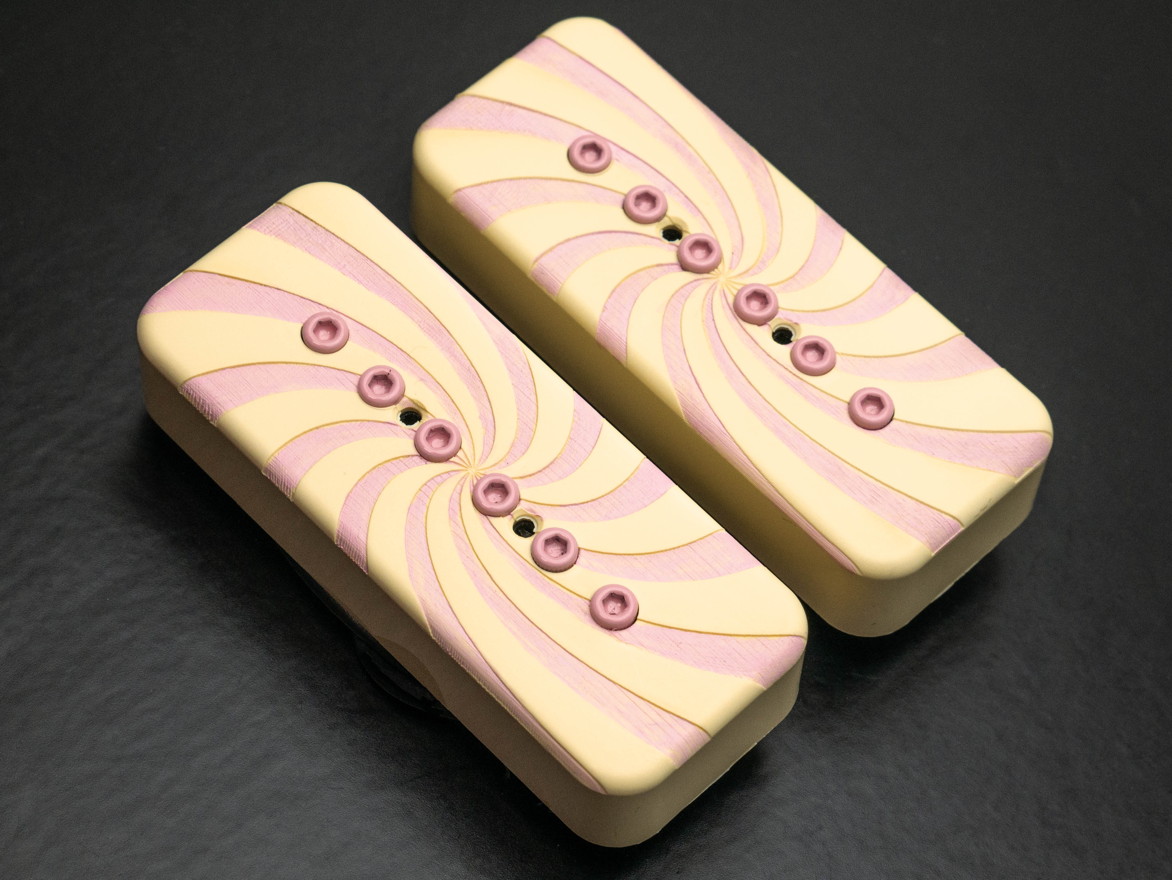 Custom Mississippi Queen P90 Soapbar singlecoil set with custom cream / pink swirl covers and powdercoated pink bolts