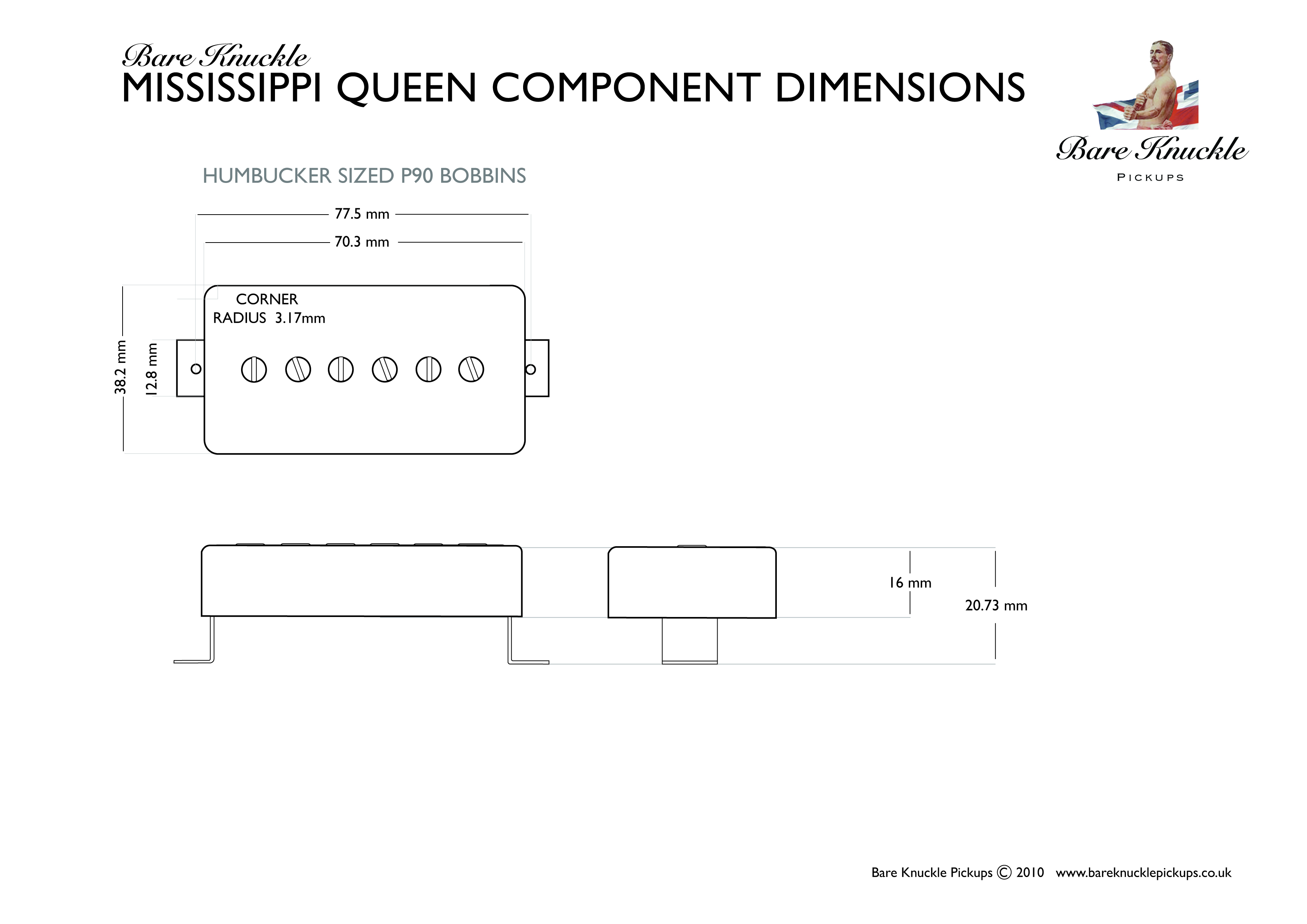 Bare Knuckle humbucker designs feature both symmetrical and asymmetrical coils. Traditionally the screw coil goes nearest the bridge and nearest the neck respectively, but feel free to experiment for optimum tone.