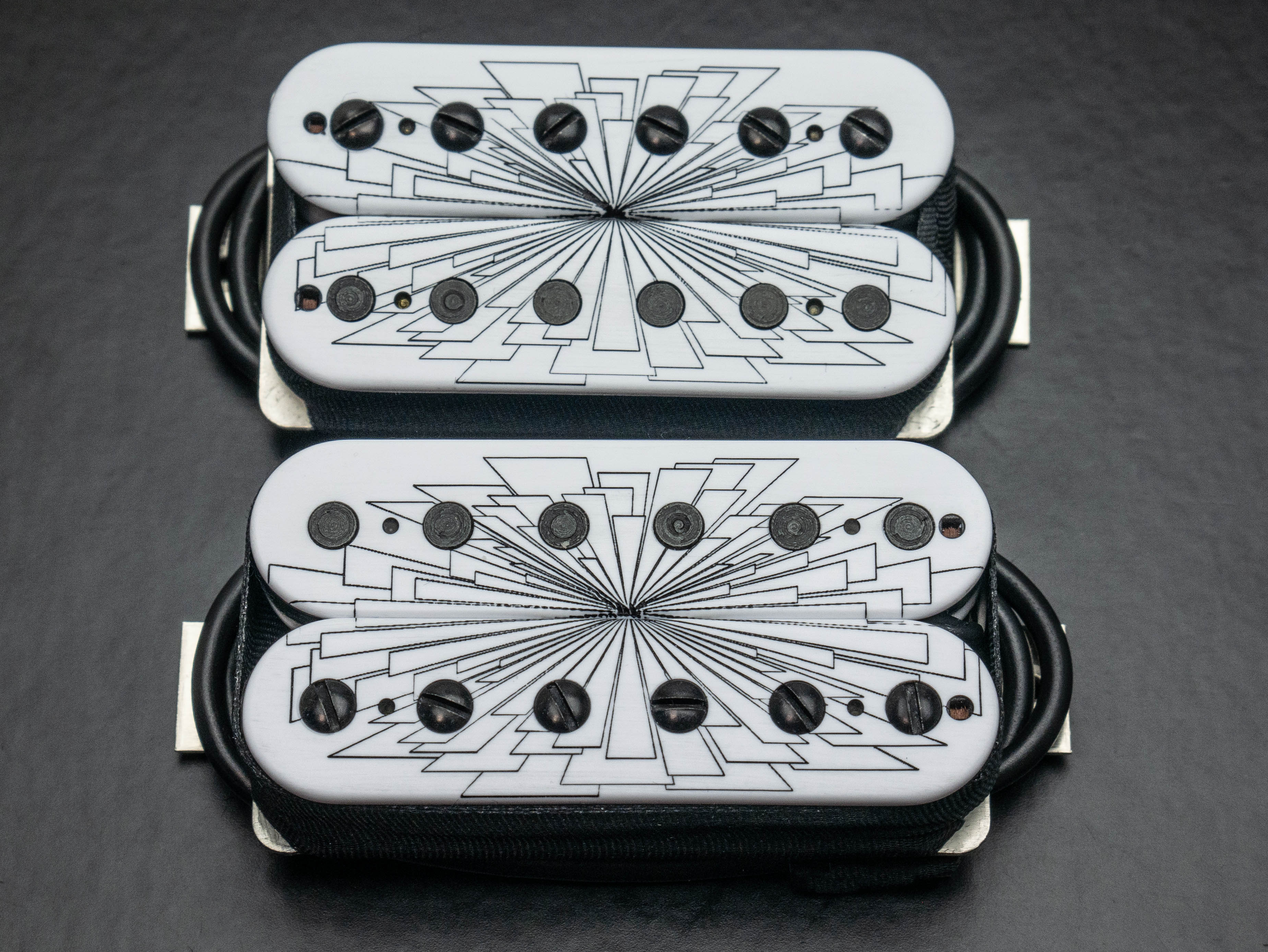 Nailbomb humbucker set, custom etched and painted with white "Vanishing Point" finish