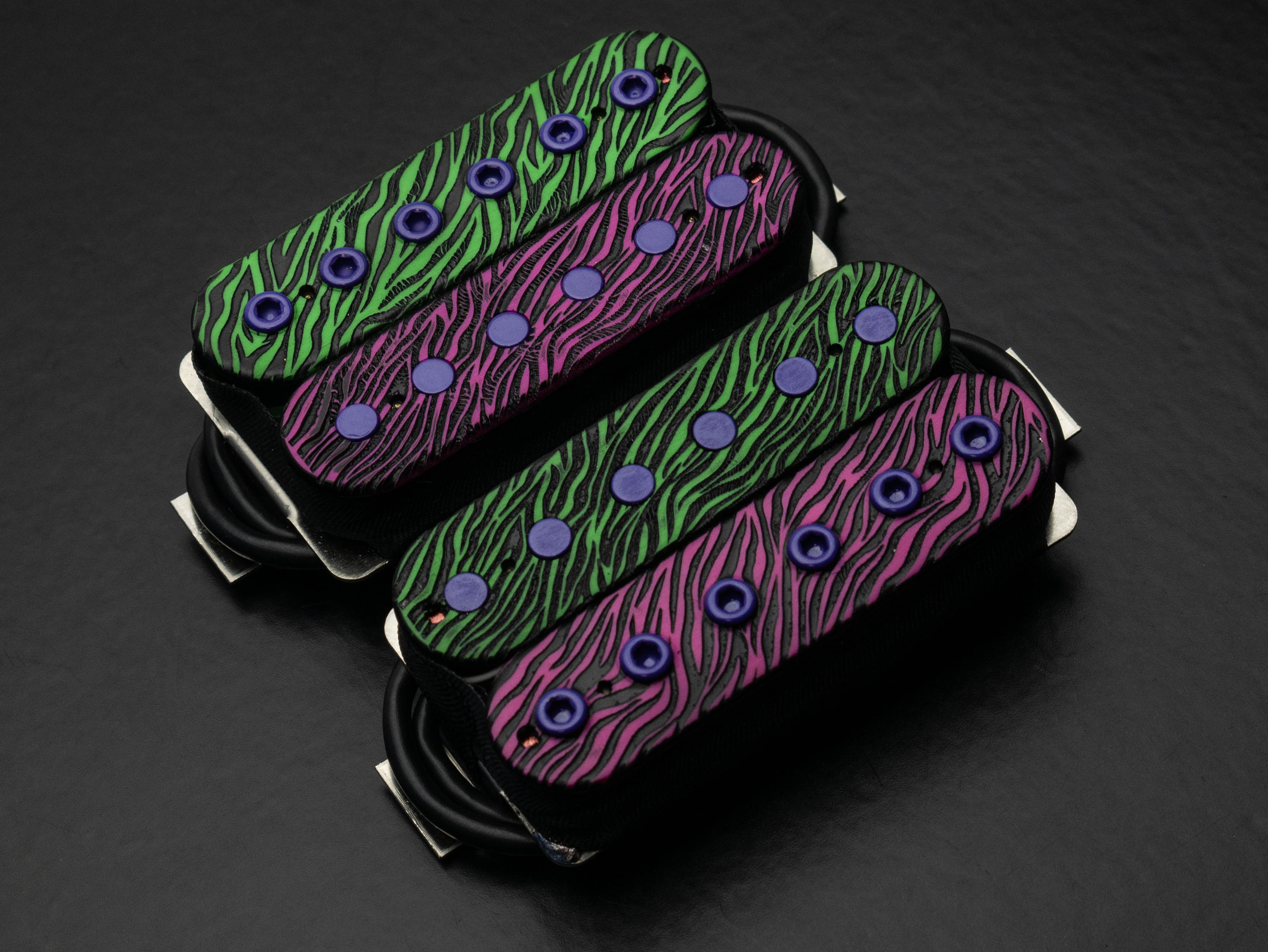 Custom green and pink zebra etched 53mm Holydiver humbucker set.