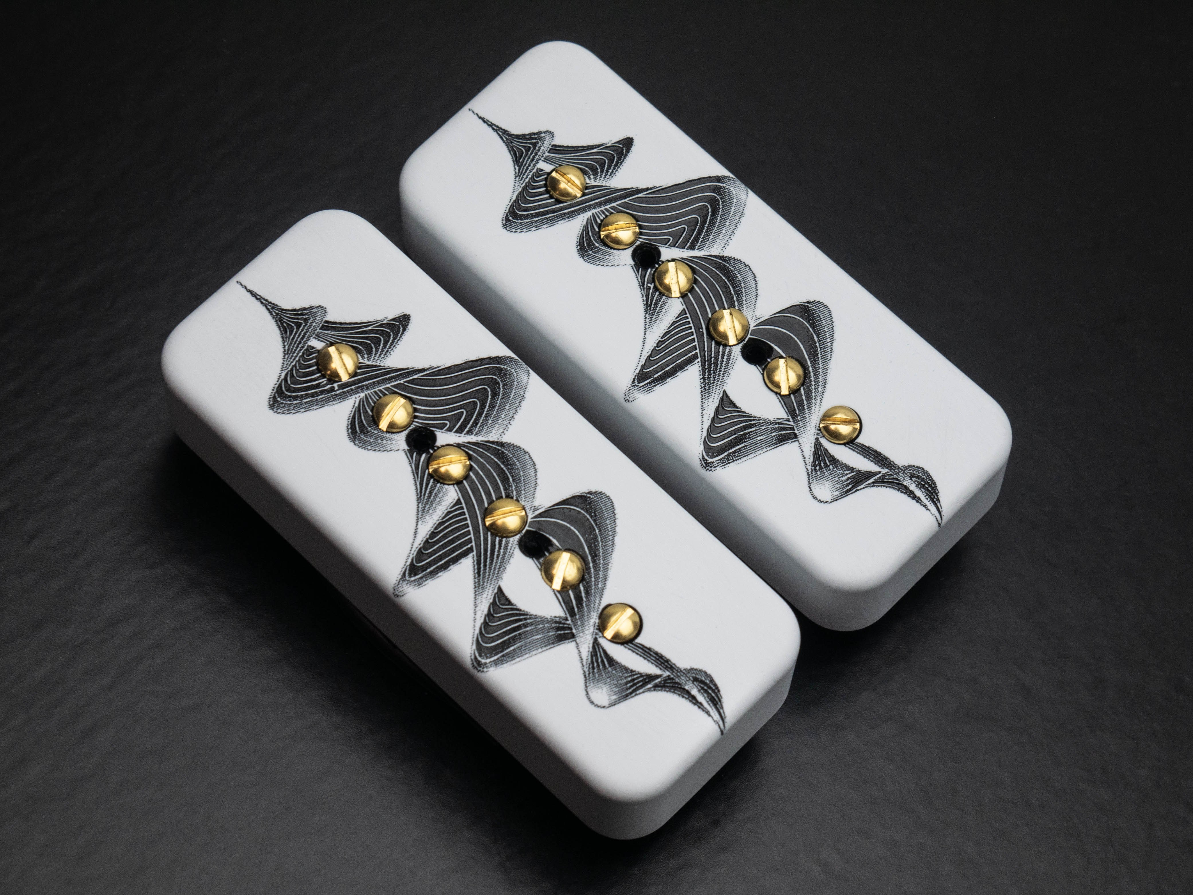 Special Edition Nantucket soapbar P90 calibrated bridge and neck set with custom Soundwave etch white covers and gold pole screws