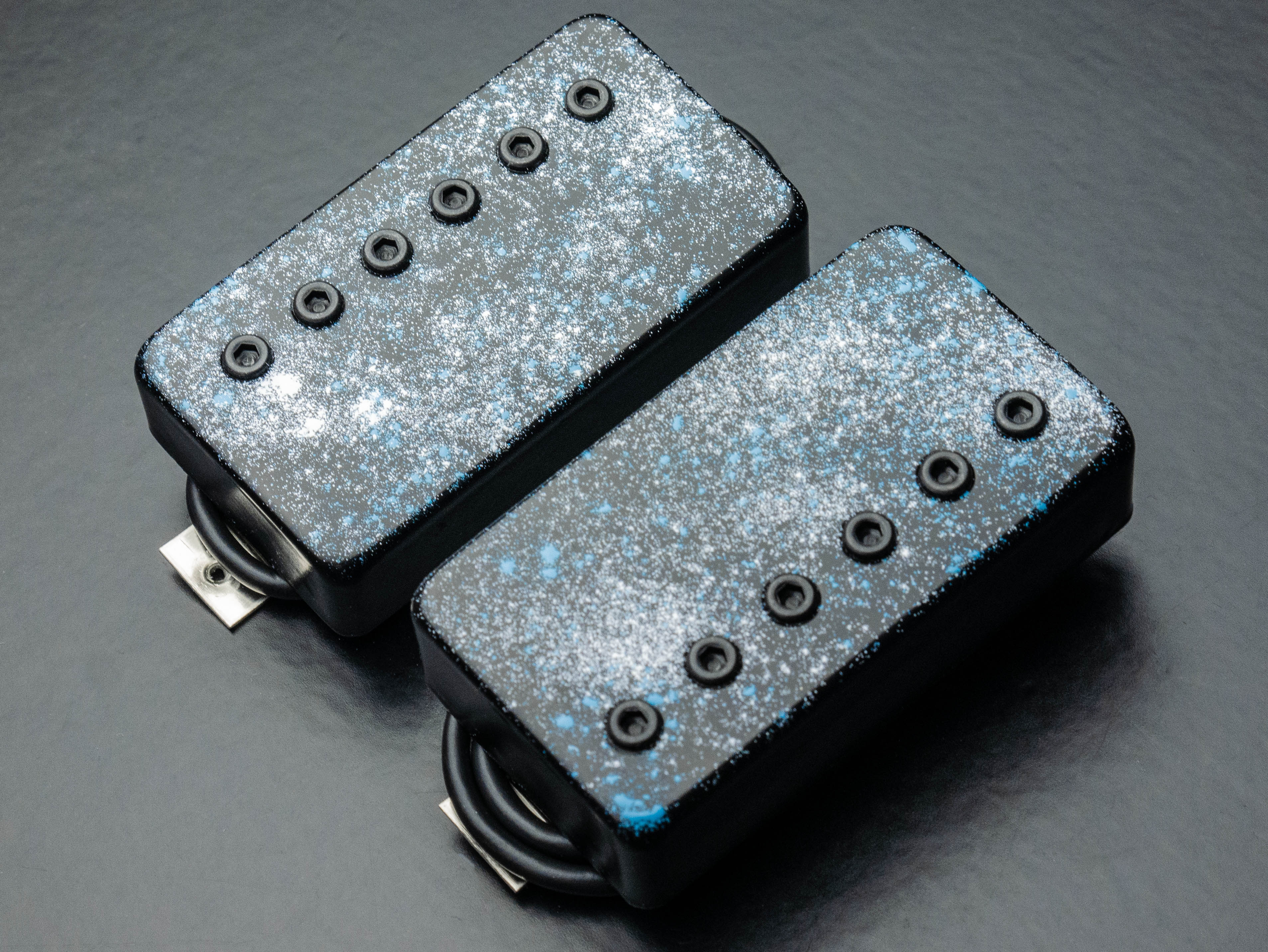 Custom Painkiller calibrated bridge/neck humbucker set with black / white / blue speckle finish